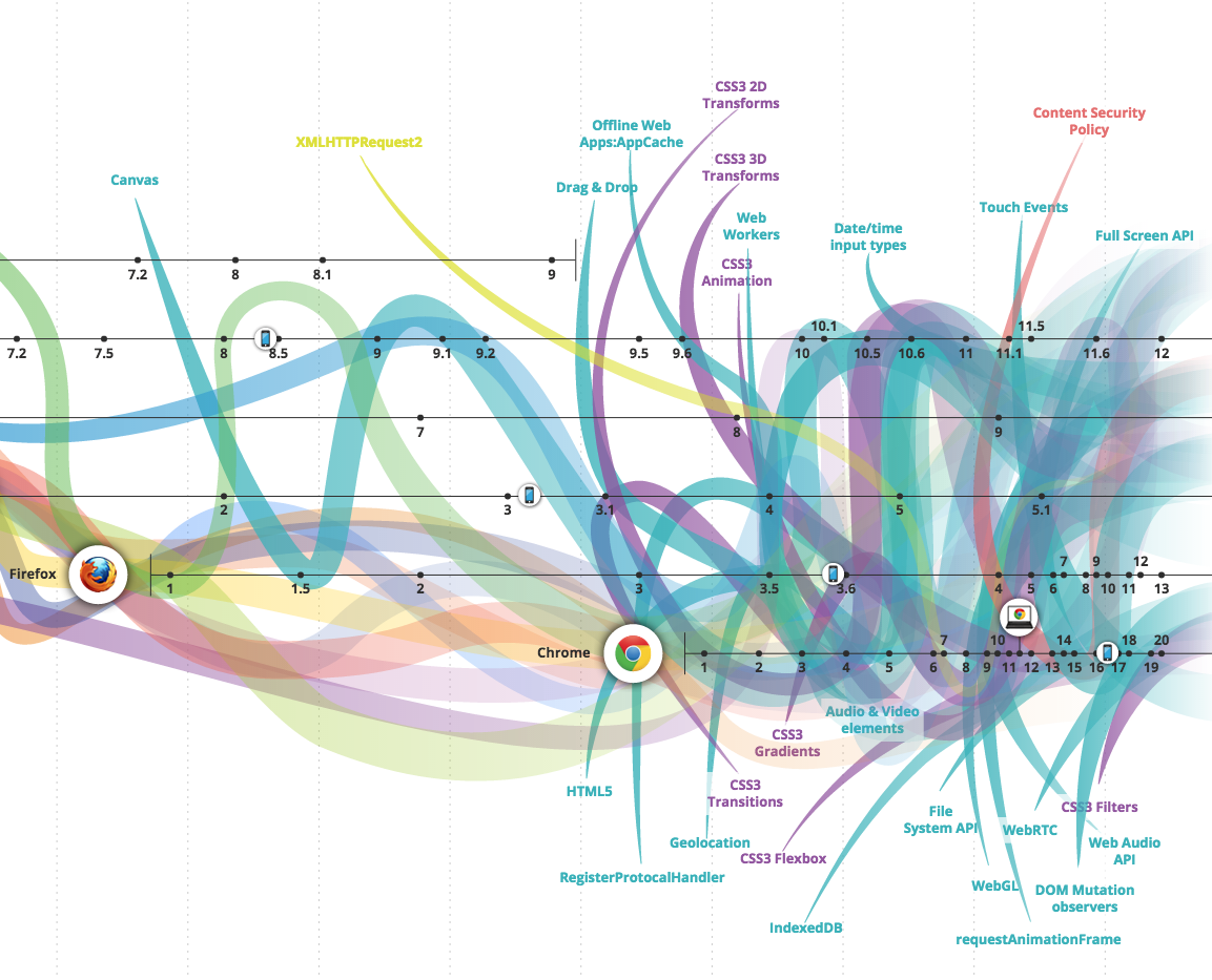 在适当的情况下,您应该了解并学习 Web/浏览器 API。 熟悉所有这些 API 的好工具是浏览HTML5test.com 5个最新浏览器的结果。